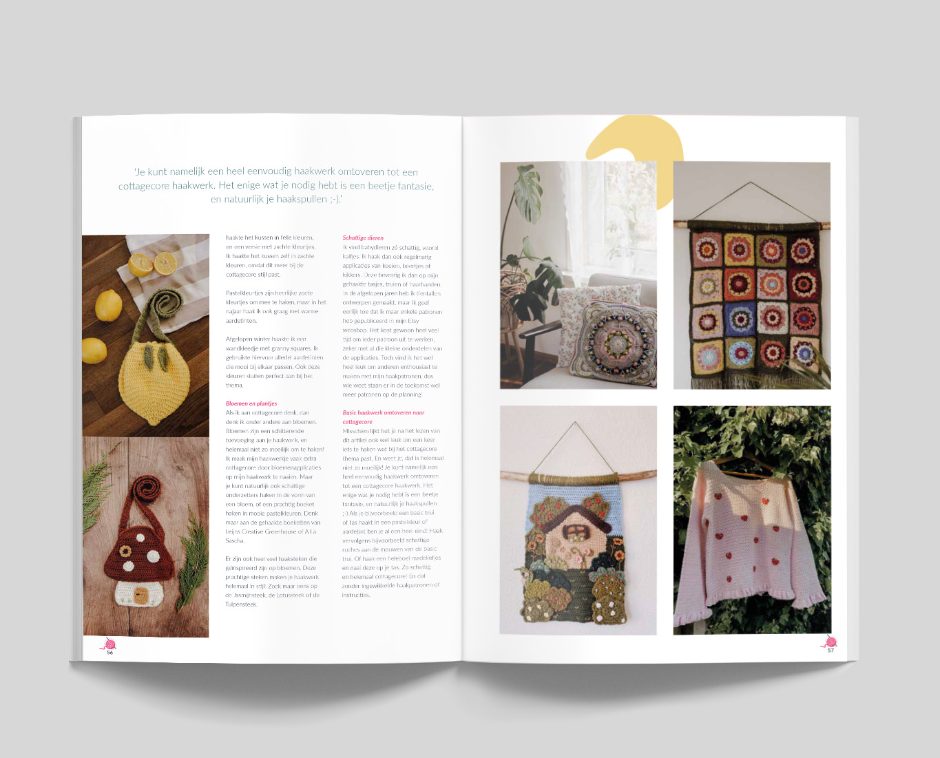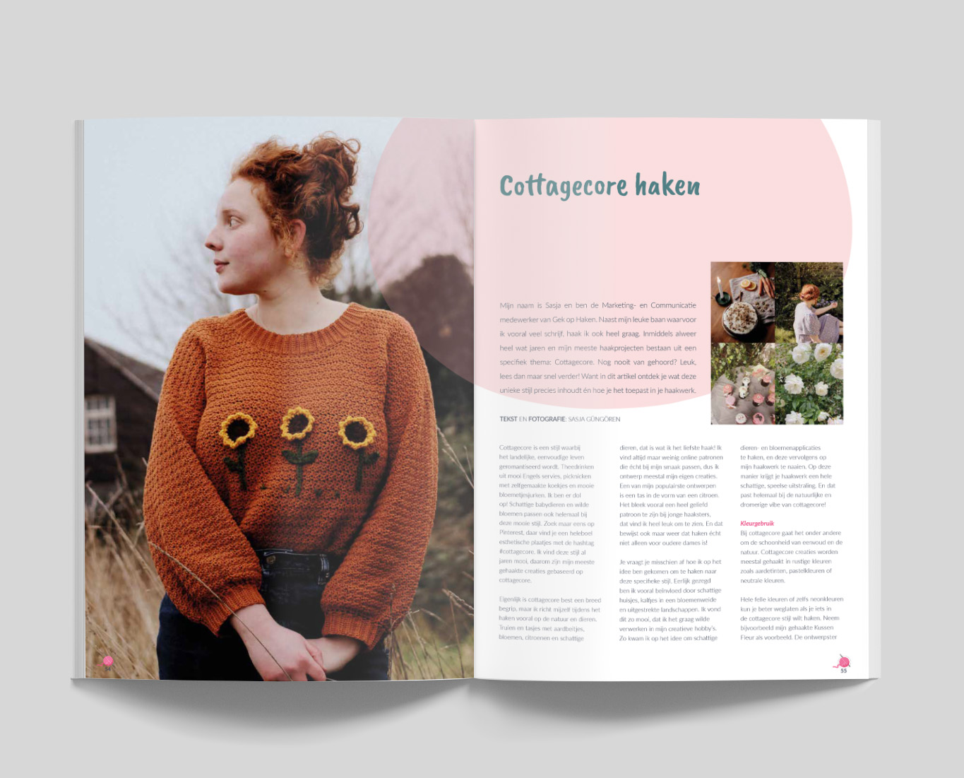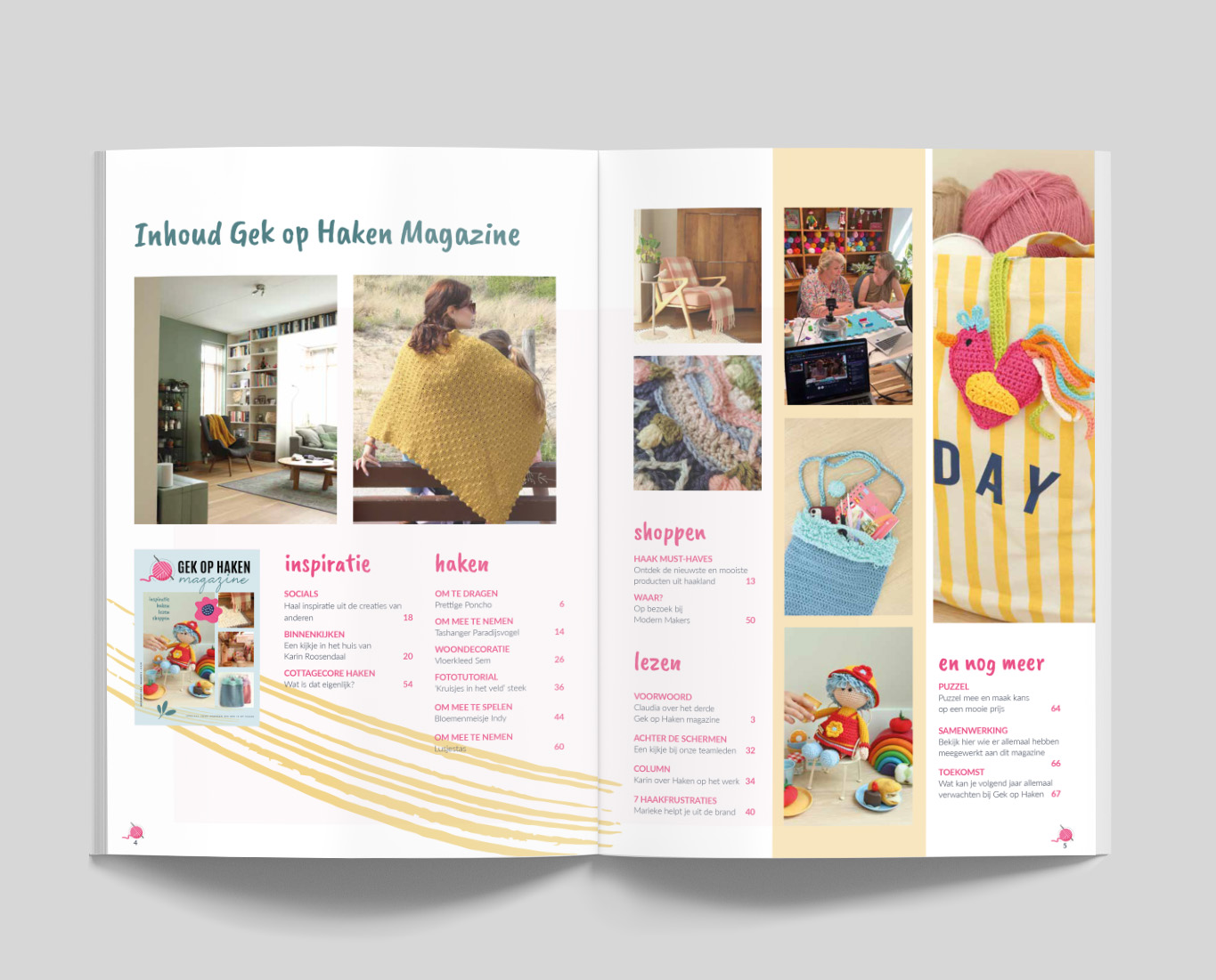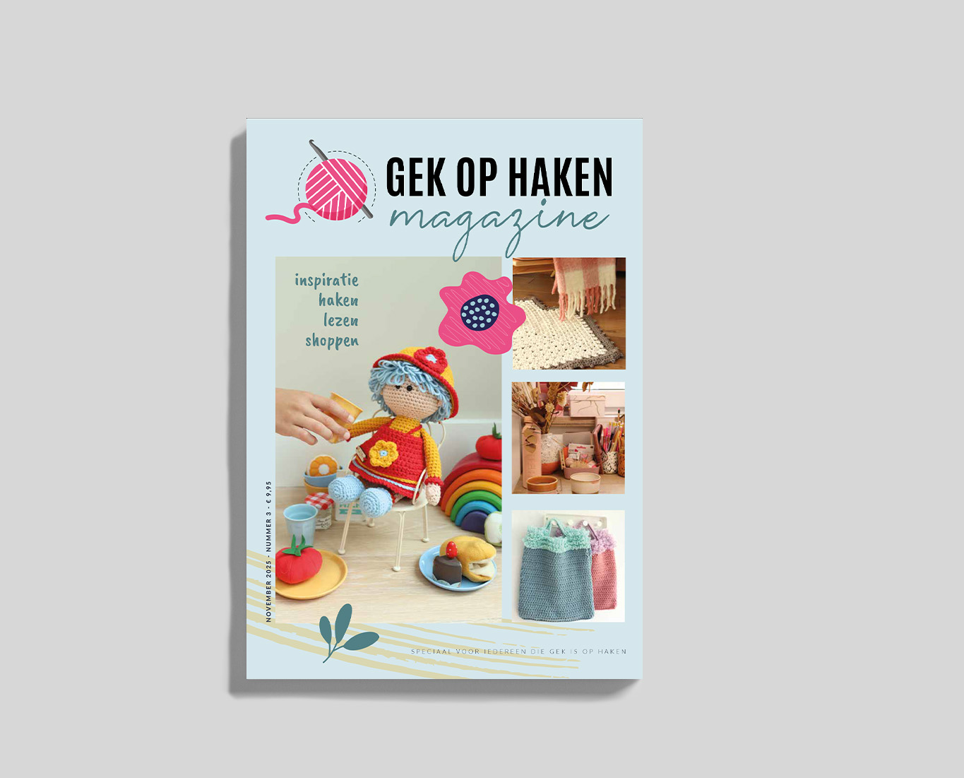 Voor het haakplatform Gek op Haken heb ik de opmaak gedaan van dit magazine. Dit magazine is los te koop op hun site en voor VIP leden is het gratis. Komt jaarlijks uit.