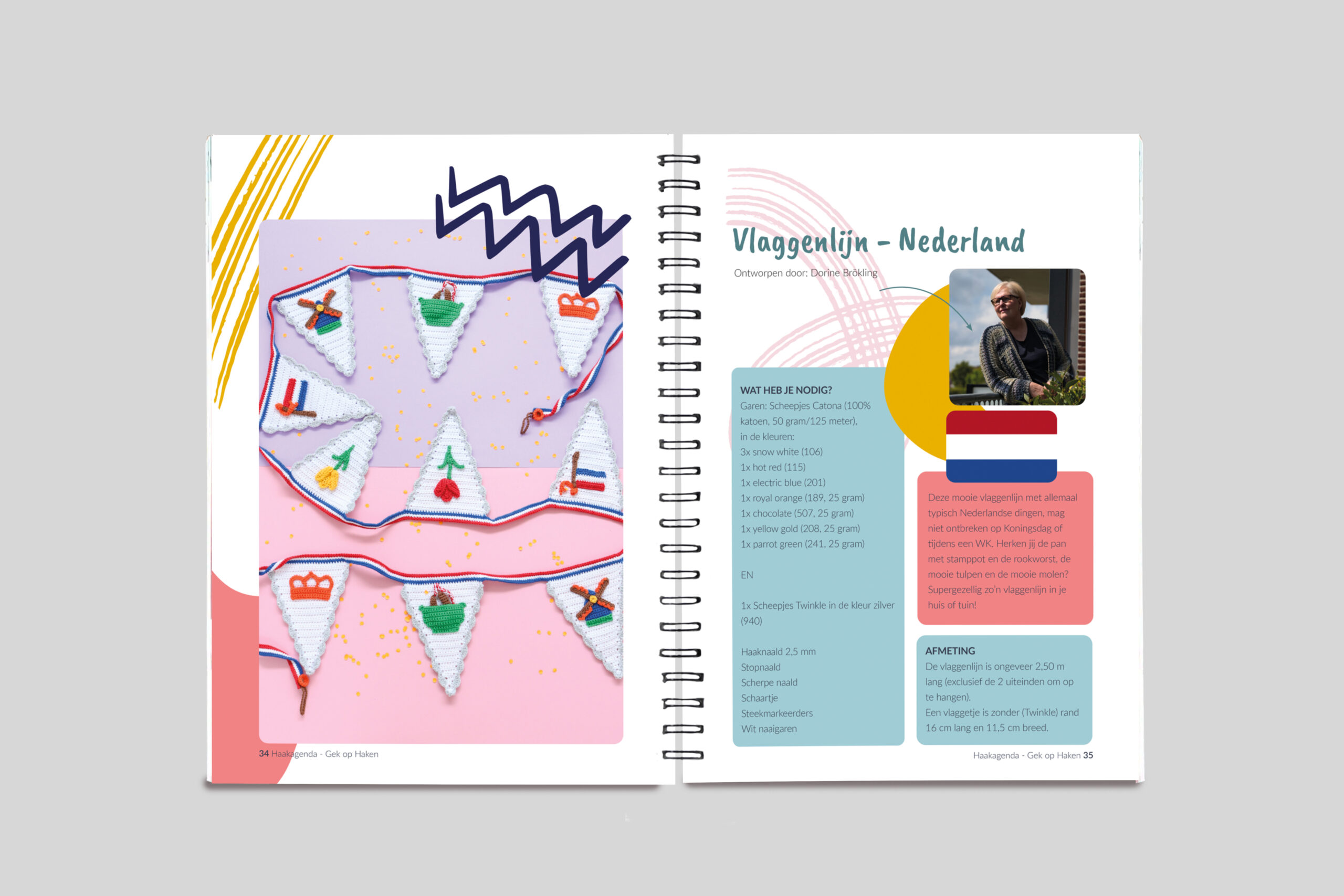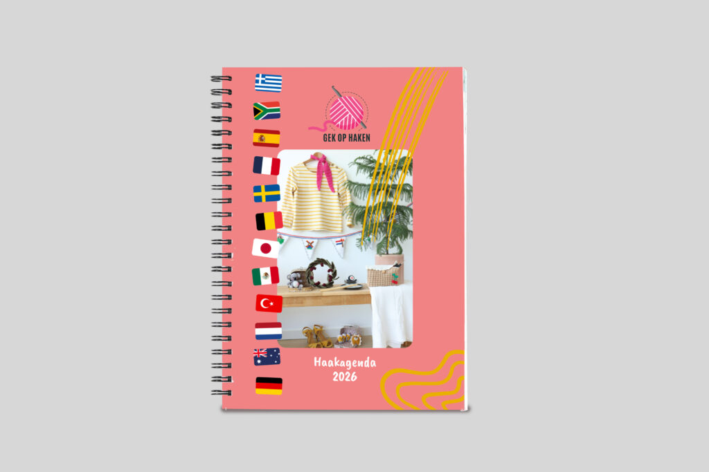Samen met Gek op Haken heb ik deze agenda vormgegeven. Een toffe agenda met uiteraard het volledige kalenderjaar erin, leuke kleine haakprojecten, notities, verjaardagen, etc. Alle zaken die in een agenda horen. De agenda is verkrijgbaar in de webshop van Gek op Haken.