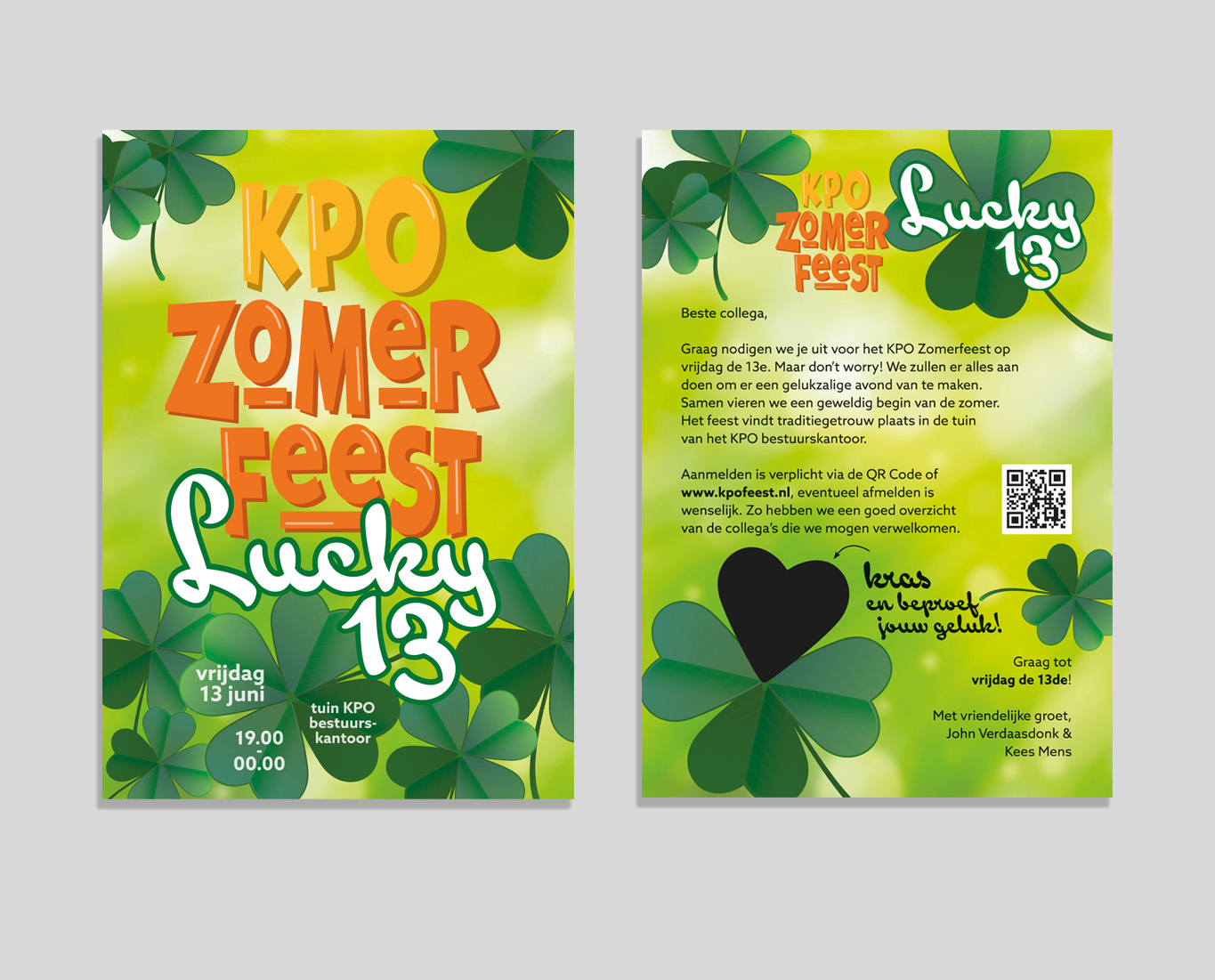 Al jaren organiseert Love for Live het zomerfeest van KPO Roosendaal. Afgelopen zomer stond het feest in het teken van vrijdag de dertiende – een thema dat helemaal draaide om geluk. De uitnodigingen waren voorzien van een kraslaag voorzien met een unieke spreuk.